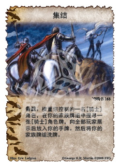 :横置你控制的一名[骑士]角色,在你的家族牌组中搜寻一张[骑士]角色牌,向全部玩家展示后放入你的手牌。然后将你的家族牌组洗牌。