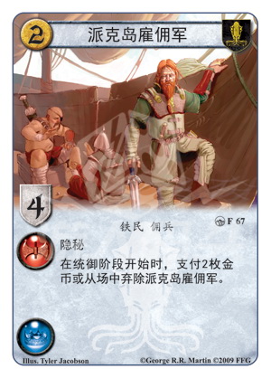 在统御阶段开始时,支付2枚金币或从场中弃除派克岛雇佣兵。