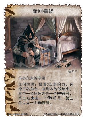 任何阶段:横置3点影响力,选择三名角色,直到本阶段结束,其中一名角色失去一个军事争夺符号,第二名失去一个阴谋争夺符号,第三名失去一个权力争夺符号。