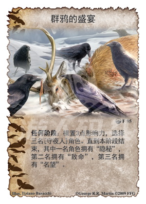 :横置3点影响力,选择三名[守夜人]角色。直到本阶段结束,其中一名角色拥有“隐秘”,第二名拥有“致命”,第三名拥有“名望”。