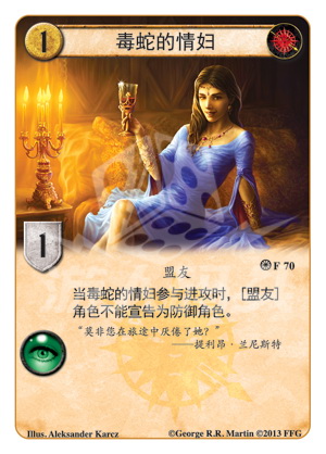 当毒蛇的情妇参与进攻时,[盟友]角色不能宣告为防御角色。