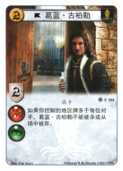 如果你控制的地区牌多余每位对手。葛蓝·古柏勒不能被杀或从场中被弃。