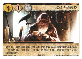 展示后,每位没有使用议政的玩家可以在他/她的家族牌组中搜寻一张角色牌,将其展示,并加入他/她的手牌。将所有被搜寻的家族牌组洗牌。