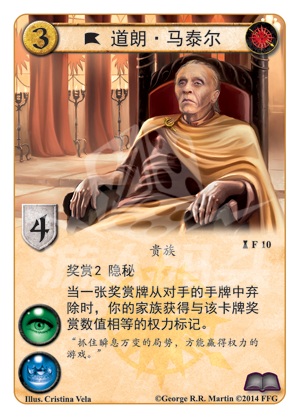 当一张奖赏牌从对手的手牌中弃除时,你的家族获得与该卡牌奖赏数值相等的权力标记。