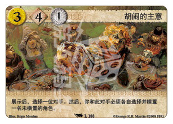 展示后,选择一位对手。然后,你和此对手必须各自选择并横置一名未横置的角色。
