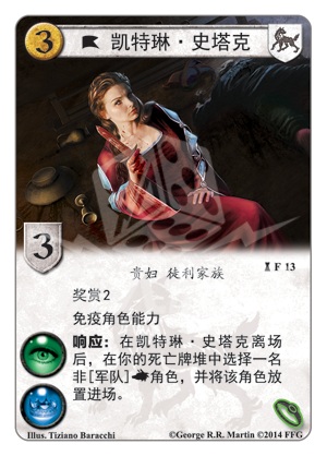 :在凯特琳·史塔克离场后,在你的死亡牌堆中选择一名非[军队]
