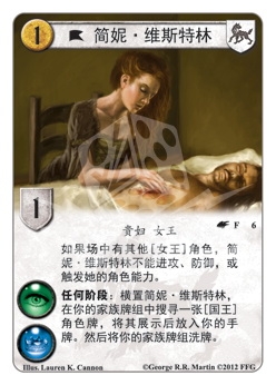 :横置简妮·维斯特林,在你的家族牌组中搜寻一张[国王]角色牌,将其展示后放入你的手牌。然后将你的家族牌组洗牌。
