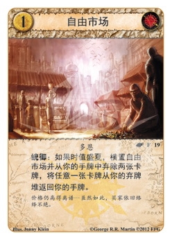 功能说明 统御:如果时值盛夏,横置自由市场从你的手牌中弃除两张卡牌,将任意一张卡牌从你的弃牌堆返回你的手牌。