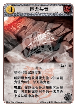 :在巨龙头骨从暗影区出场后,将其附属到对手的一名角色上或从场中弃除。