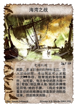 争夺。除常规的争夺效果外,如可能,每次争夺的胜方将一张[君临]地区牌从他/她的弃牌堆返回他/她的手牌。(将此卡牌放置在你的战略牌组旁直到史诗阶段结束,然后将其弃除。)