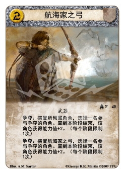 :横置航海家之弓,选择一名参与争夺的角色。直到本阶段结束,该角色获得能力值+2。(每个阶段限制1次)