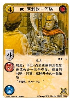 :你以4点或更高的总强度差值失去一次争夺后,横置阿利欧·何塔,选择并杀死一名角色。