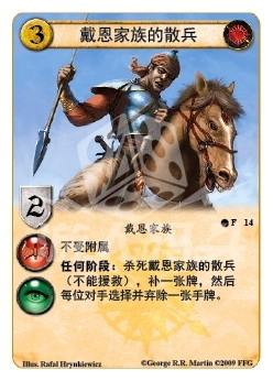 :杀死戴恩家族的散兵(不能援救),补一张牌,然后每位对手选择并弃除一张手牌。