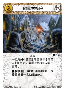 功能说明 一旦场中[蛮族]角色多于[守夜人]角色时,鼹鼠村妓院从场中弃除。