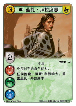 任何阶段:横置1点影响力,重置蓝礼·拜拉席恩。