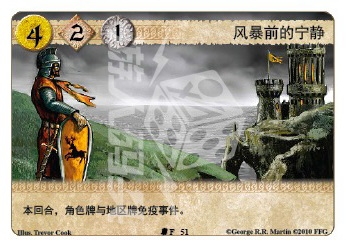 功能说明 本回合,角色牌与地区牌免疫事件。