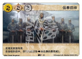 在备战阶段中,你打出的首张史塔克家族角色牌的费用减2。