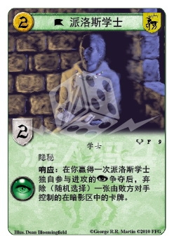 响应:在你赢得一次派洛斯学士独自参与进攻的阴谋争夺争夺后,弃除(随机选择)一张由败方对手控制的在暗影区中的卡牌。