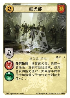 功能说明 任何阶段:横置画犬部,选择一名角色。直到本阶段结束,该角色获得能力值+2(如果你手牌中的卡牌数量少于每位对手则能力值+4)。