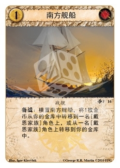 :横置南方舰船,将1枚金币从你的金库中转移到一名[戴恩家族]角色上,或从一名[戴恩家族]角色上转移到你的金库中。