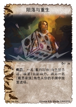 :一名[戴恩家族]角色被杀后,横置2点影响力,将另一名[戴恩家族]角色从你的手牌中放置进场。