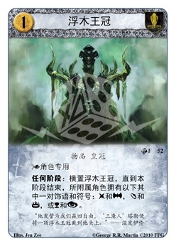 "任何阶段:横置浮木王冠,直到本阶段结束,所附属角色拥有以下其中一对饰语和符号:勇武军事争夺高贵权力争夺,或崇圣阴谋争夺