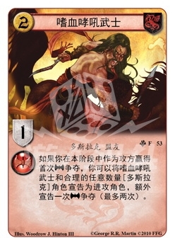 争夺,你可以将嗜血哮吼武士和合理的任意数量[多斯拉克]角色宣告为进攻角色,额外宣告一次