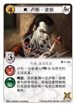 :在你赢得一次卢斯·波顿参与的争夺后,所有玩家控制他们当前在场的每一名自己拥有的角色。