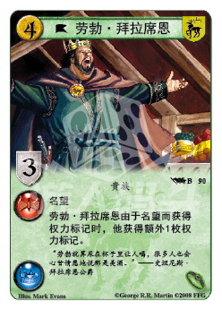 劳勃·拜拉席恩由于名望而获得权力标记时,他获得额外1枚权力标记。