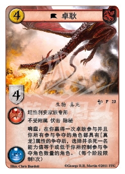 :在你赢得一次卓耿参与并且你所有参与争夺的角色都具有[真龙]属性的争夺后,选择并杀死一名能力值等于或低于你所控制参与争夺角色数量的角色。(每个阶段限制1次)