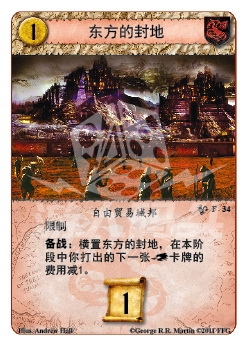 备战:横置东方的封地,在本阶段中你打出的下一张坦格利安家族卡牌的费用减1。
