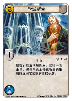 :横置学城新生,选择一名角色。将该角色上任意数量的附属牌返回它们拥有者的手牌。