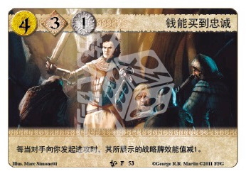 每当对手向你发起进攻时,其所展示的战略牌效能值减1。
