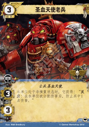 文本本单位处于非横置状态时,它获得:“反应:在本单位被分配伤害后,防止其中1点伤害。”