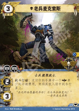 文本战斗行动:支付你的手牌中一个星际战士单位的印刷费用,来将其放入场中到本行星上。