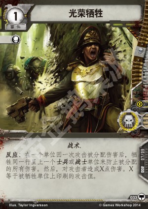单位来防止被分配的所有伤害。然后,对攻击者造成X点伤害。X等于被牺牲单位上印刷的攻击值。