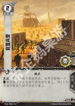 文本反应:在一个战斗轮结束后,如果你控制一个帝国防卫军单位在这个正在进行战役的行星上,将1个卫兵指示物放入场中到该行星上。