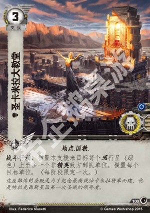 描述这座雄伟的圣殿是为了纪念最高统帅卡米拉将军而建,他是特拉克西斯星区第一次圣战的领导者。