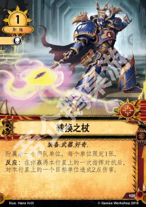 反应:在你赢得本行星上的一次指挥对抗后,对本行星上的一个目标单位造成2点伤害。