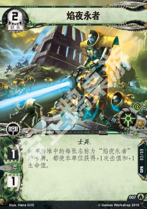 文本你弃牌堆中的每张名称为“焰夜永者”的卡牌,都使本单位获得+1攻击值和+1生命值。