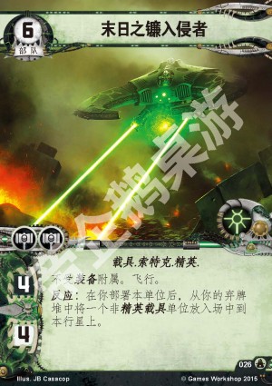反应:在你部署本单位后,从你的弃牌堆中将一个非精英载具单位放入场中到本行星上。