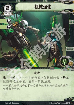 文本战斗行动:在一个目标行星上你控制的每个太空死灵单位获得+2生命值,直到本阶段结束。