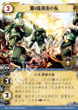 文本深入打击(2)。(支付1资源来以面向下的方式部署本卡牌。当一场战役开始时,你可以支付本卡牌的深入打击费用来将其翻转为面向上。)
