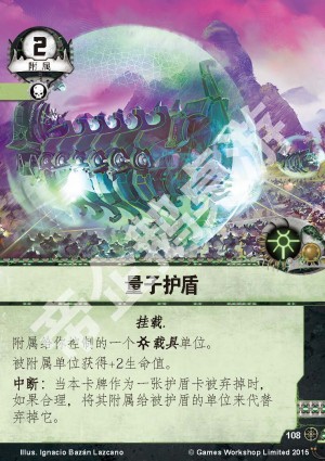 :当本卡牌作为一张护盾卡被弃掉时,如果合理,将其附属给被护盾的单位来代替弃掉它。