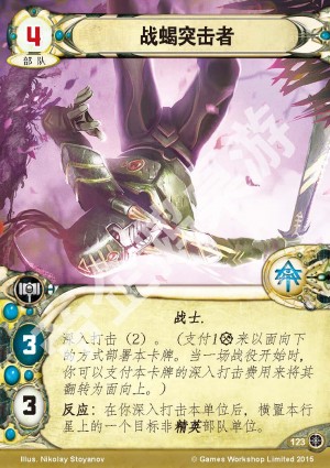 支付1资源来以面向下的方式部署本卡牌。当一场战役开始时,你可以支付本卡牌的深入打击费用来将其翻转为面向上。