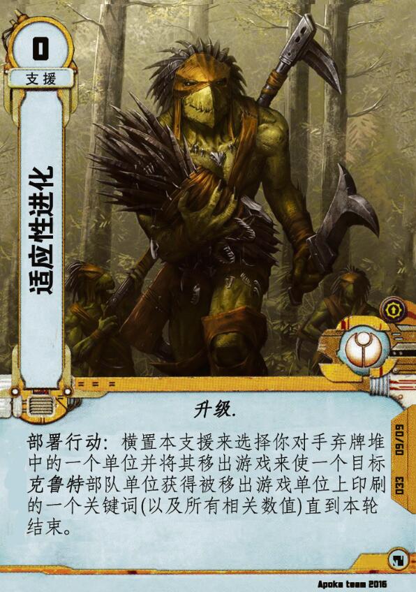 :横置本支援来选择你对手弃牌堆中的一个单位并将其移除游戏来使一个目标