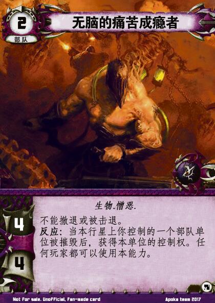 不能撤退或被击退。 反应:当本行星上你控制的一个部队单位被摧毁后,获得本单位的控制权。任何玩家都可以使用本能力。
