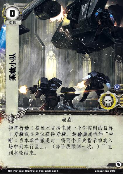 战斗行动:横置本支援来使一个你控制的目标非升级载具