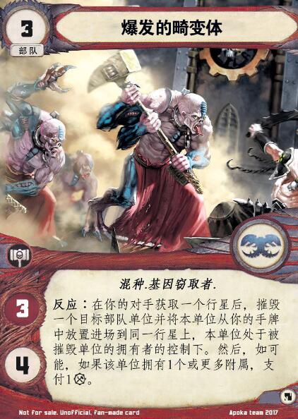 摧毁一个目标部队单位并将本单位从你的手牌中放置进场到同一行星上,本单位处于被摧毁单位的拥有者的控制下